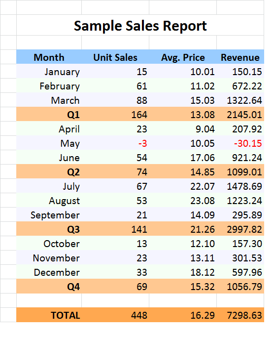 oA.addRow(String.format("{:Rb}Q%d/%d/%.2f/%.2f",nQtr[i],nQtrSales,dQtrRev / nQtrSales,dQtrRev).split("/"),"#qtr");
